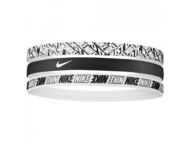 Nike Printed Headbands - це набір з трьох еластичних гумок для волосся. Вони запобігають потраплянню волосся в область обличчя, а силіконова стрічка на внутрішній стороні гарантує, що пов'язка буде триматися в потрібному місці протягом усього тренування. Еластична конструкція адаптується до голови.